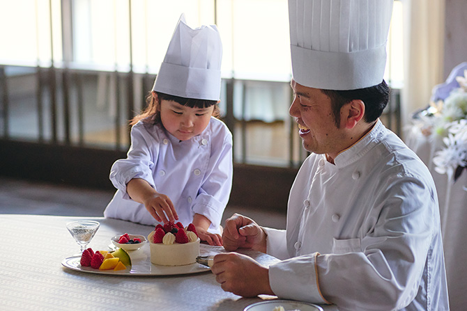 | 料金 | 親子2名一組あたり ¥12,000 *追加:大人1名あたり ¥6,000/子ども1名あたり ¥6,000 ※税金・サービス料込 【含まれる内容】 ・パティシエ体験料、コックコート・コック帽(貸出し) ・修了証、記念フォトプレゼント ・お食事、お飲み物(お一人様につき1杯)を含む ※キャンセル料は以下の通り申し受けいたします 当日:100%、前日:50%、2日前:30% |
