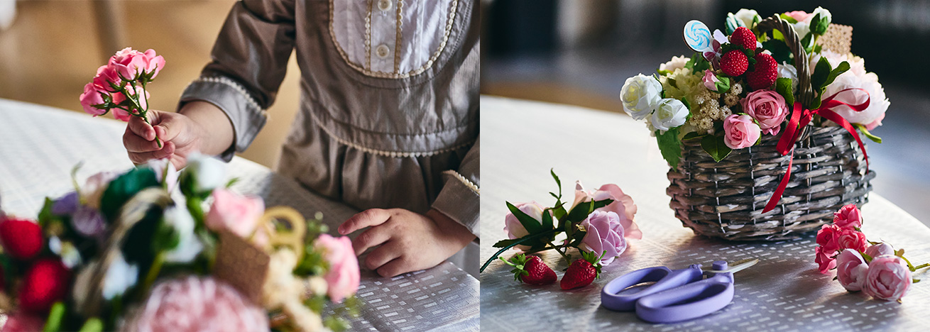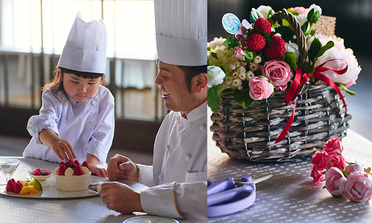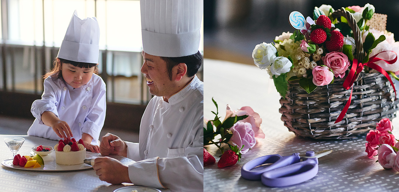 お子様の創造力を育む、ケーキ作りの「パティシエ体験」と、お花のアレンジの「フラワーデザイナー体験」をご用意いたしました。